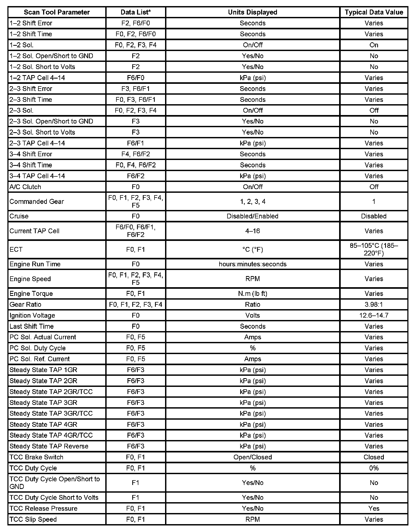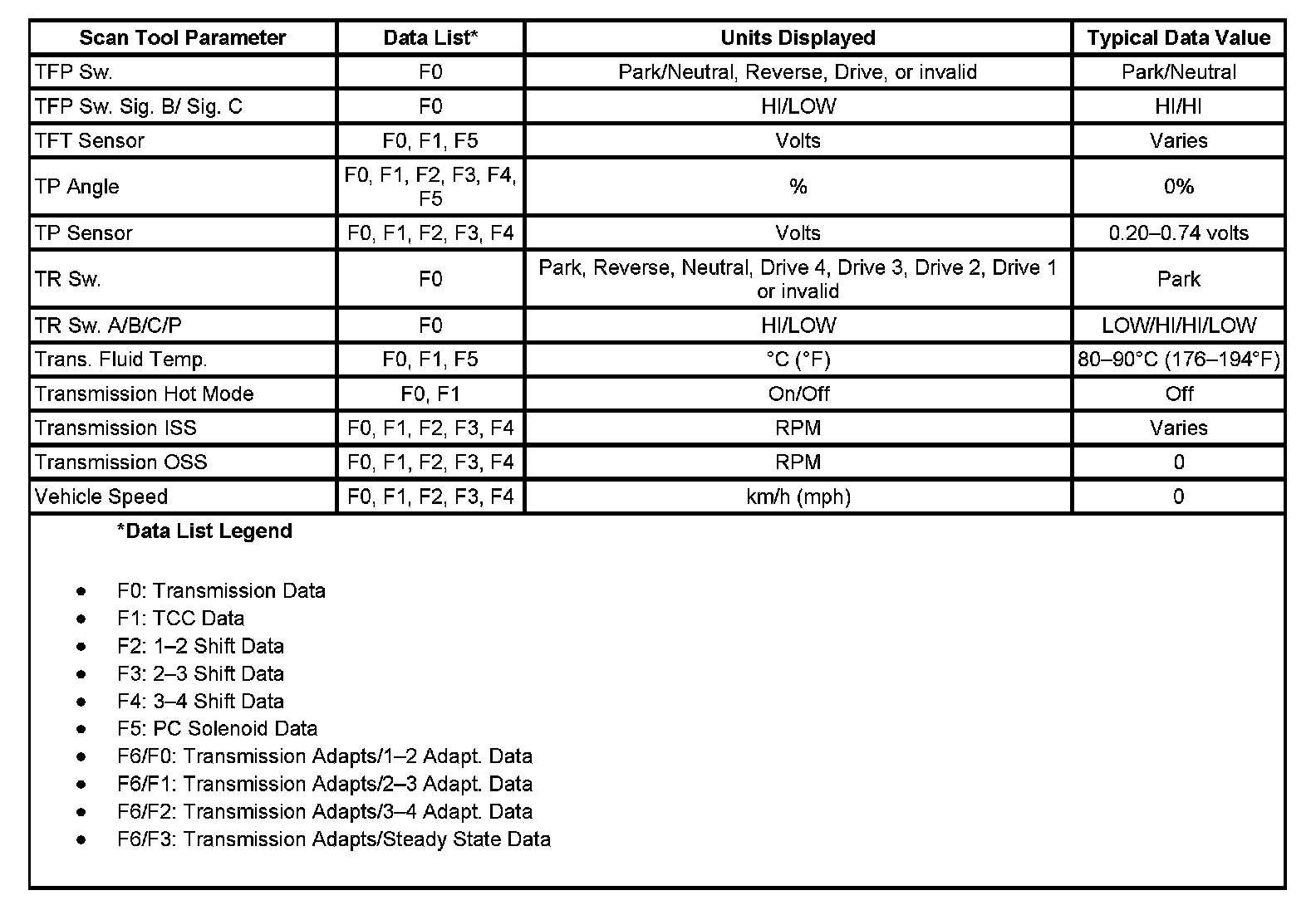 Transmission Scan Tool Data List