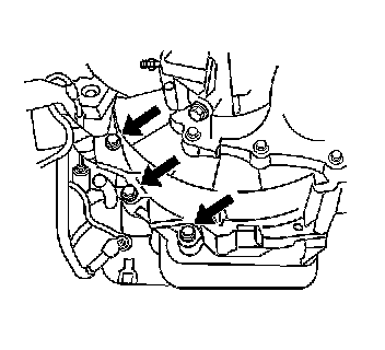 23. Remove the flywheel support arm bracket from the flywheel cover to engine lower mount.