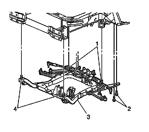 5. Install the front suspension crossmember front bolts (4). Hand tighten the bolts.