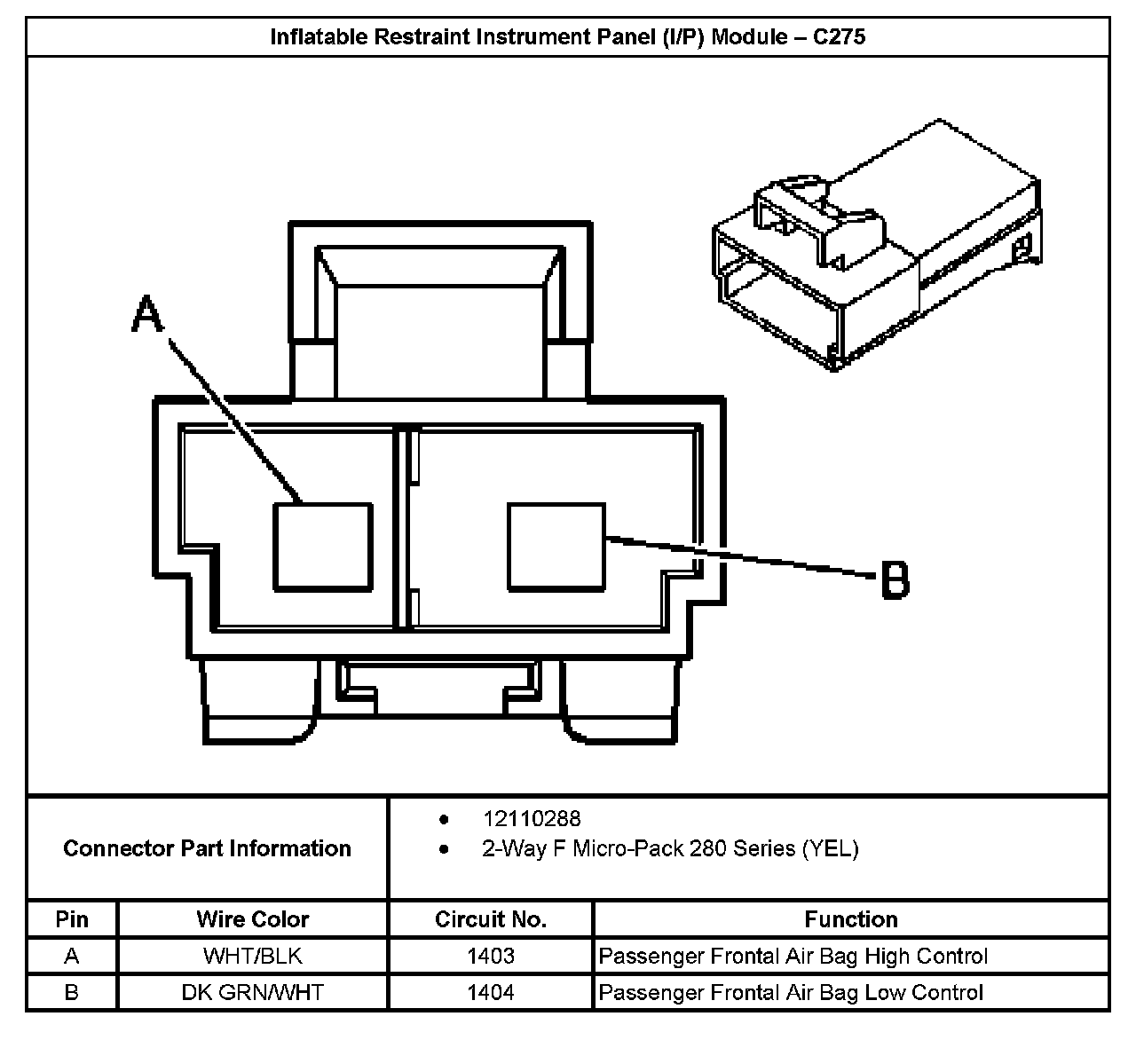 Inflatable Restraint Instrument Panel (I/P) Module - C275: