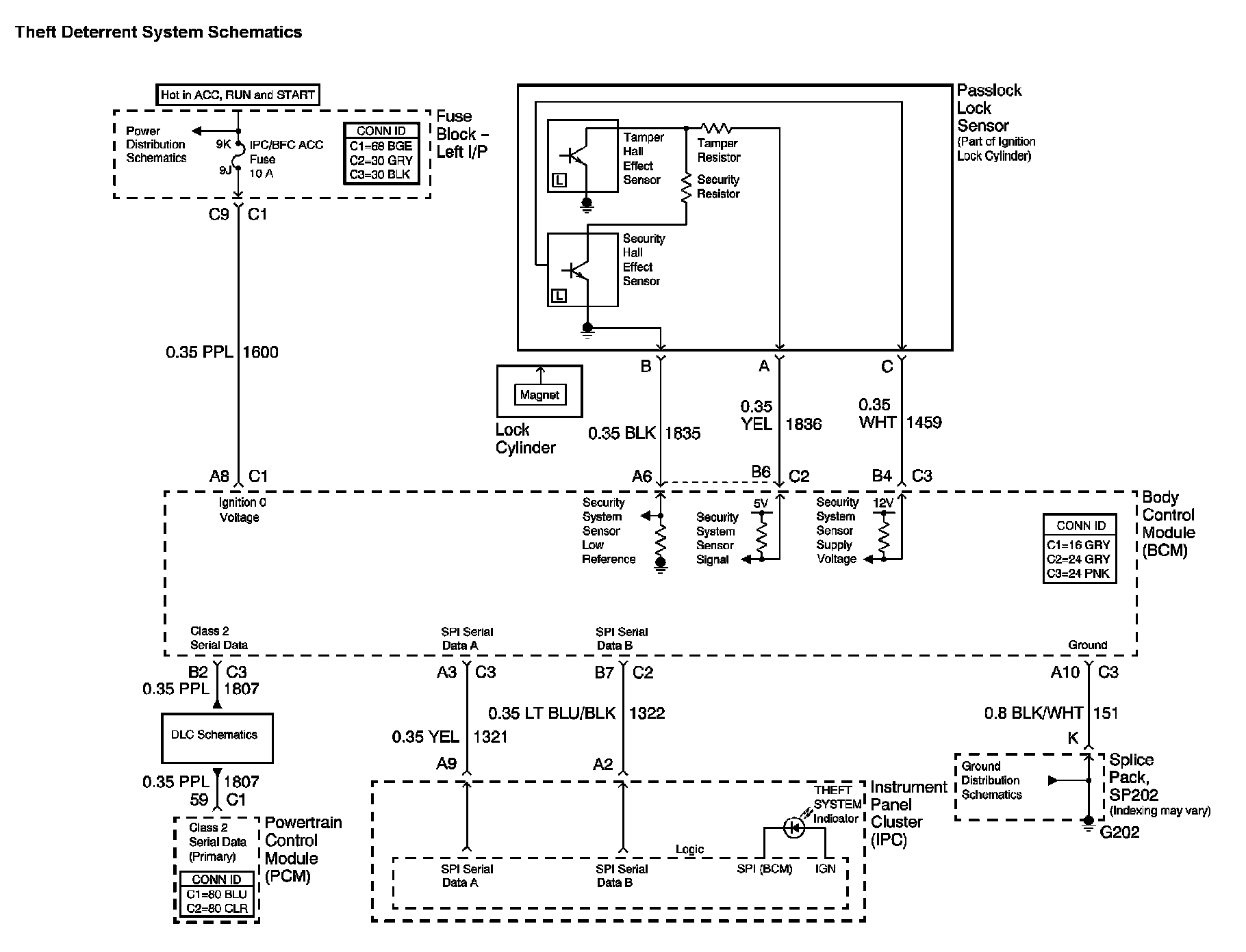 The locations for the Connectors, Grounds, Splices, and grommets shown within these diagrams can be found via their numbers at vehicle locations.