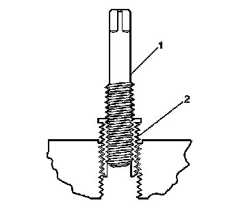 17. Apply threadlock LOCTITE 277, J 42385-109 (1), or equivalent to the insert OD threads (2).