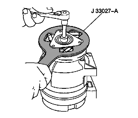 13. Install the J 33027-A to hold the compressor clutch hub.