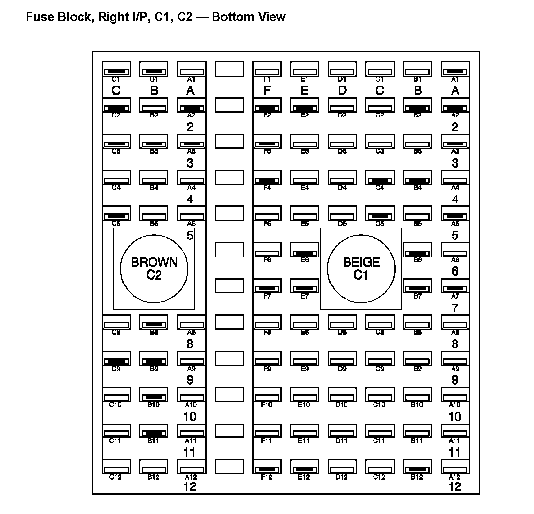 Fuse Block - Right I/P - C1, C2 - Bottom View