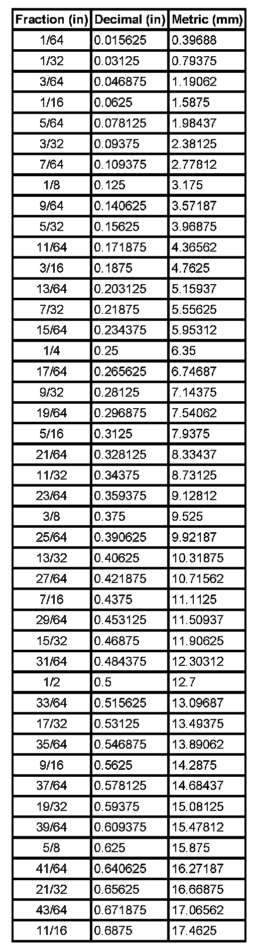 Equivalents - Decimal And Metric