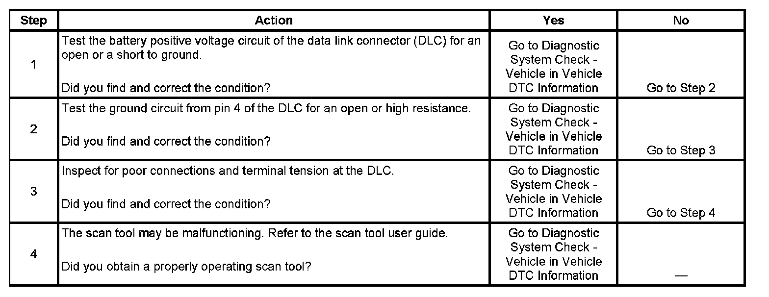4. If the battery positive voltage and ground circuits of the DLC are functioning properly. The malfunction must be due to the scan tool.