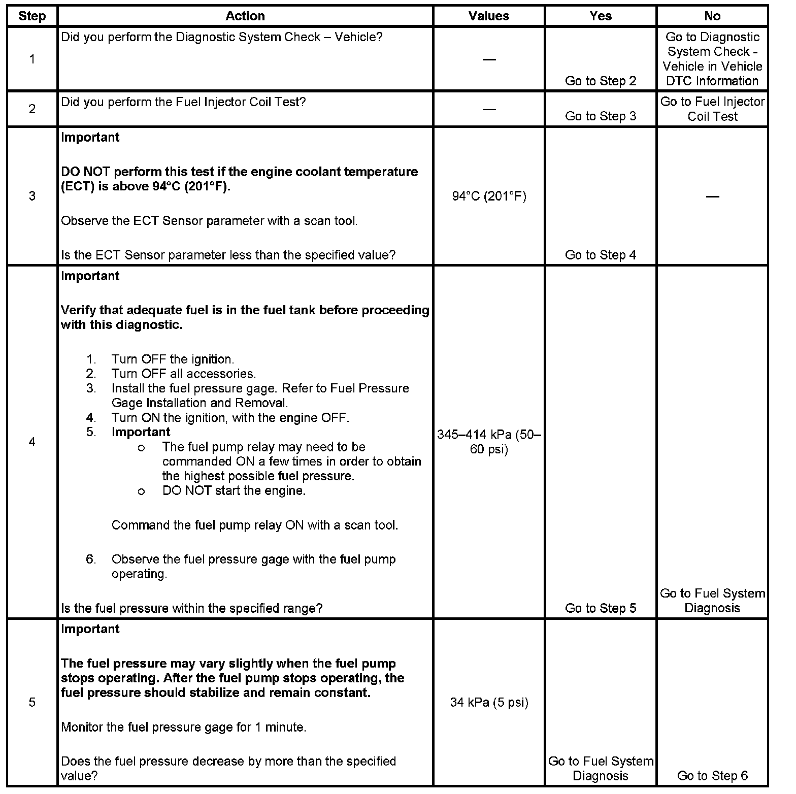 3. The engine coolant temperature (ECT) must be below the operating temperature in order to avoid irregular fuel pressure readings due to hot soak fuel boiling.