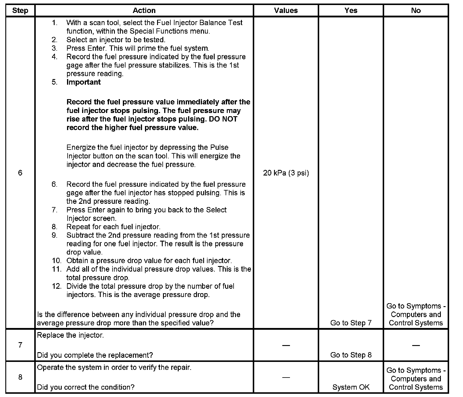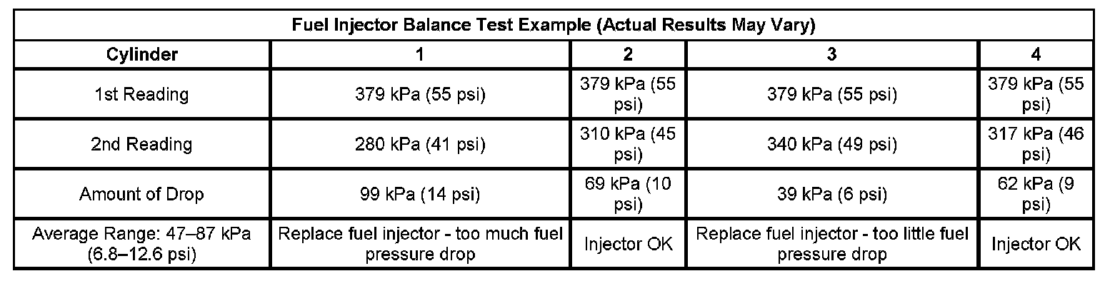 Fuel Injector Balance Test Example (Actual Results May Vary):