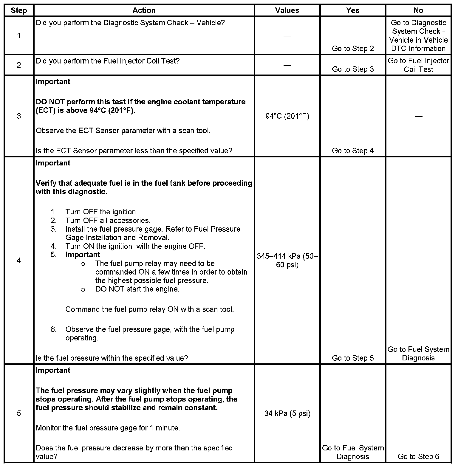 3. The engine coolant temperature (ECT) must be below the operating temperature in order to avoid irregular fuel pressure readings due to hot soak fuel boiling.