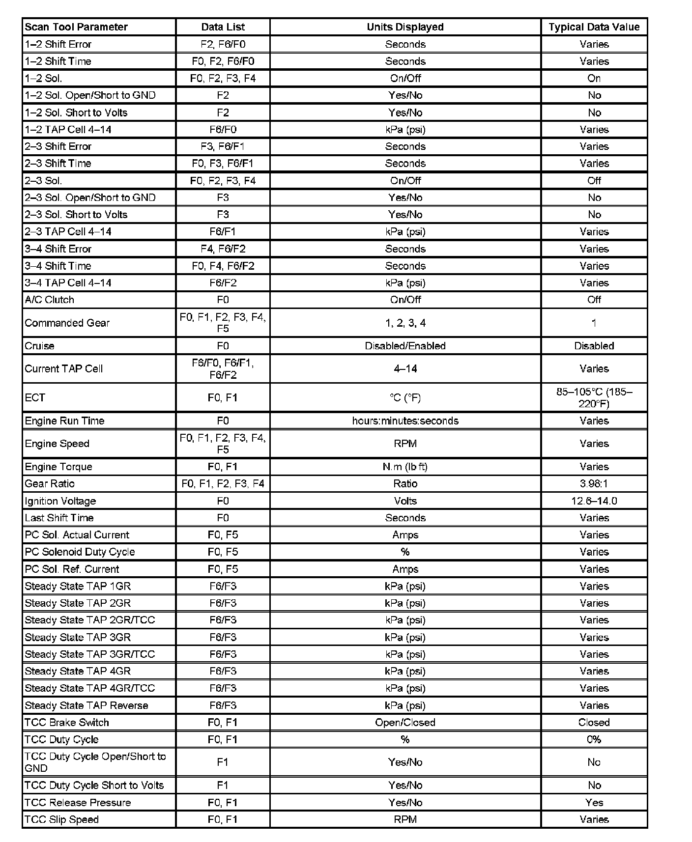 Transmission Scan Tool Data List