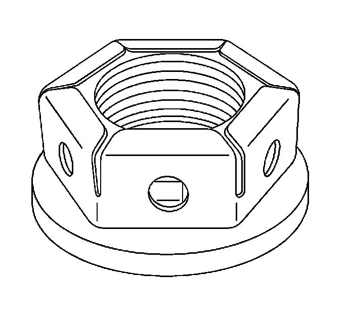 Notice: Refer to Fastener Notice in Service Precautions.Important: This vehicle is equipped with two different style wheel drive shaft nuts. The first design is a black Pac style. The second design is a gray Solid style. Both have very different torque values.