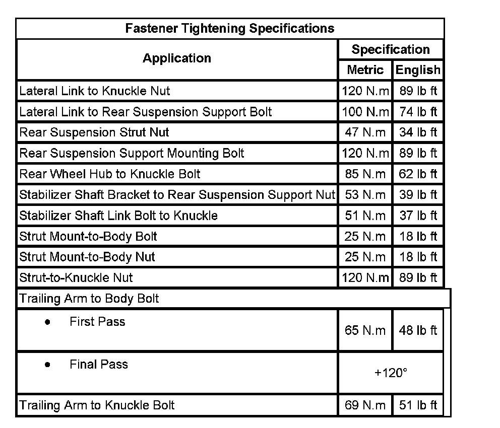 Fastener Tightening Specifications: