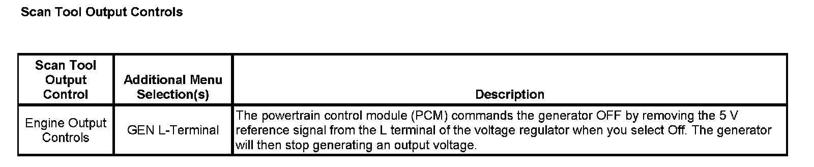 Scan Tool Output Controls: