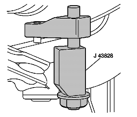Separate the ball joint stud from the steering knuckle using the J 43828.