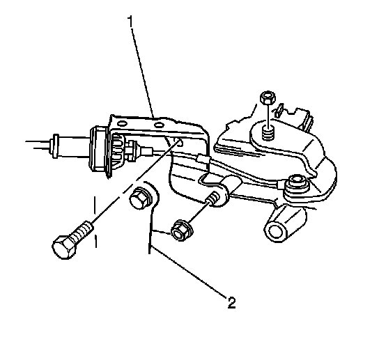 6. Install the cable at the transmission selector lever (2).
