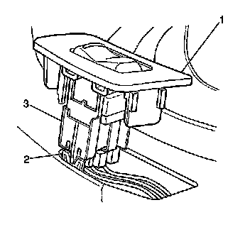 1. Use a flat bladed tool in order to remove the power window switch (3) from the door trim panel. Push in and lift up at the side of the switch.