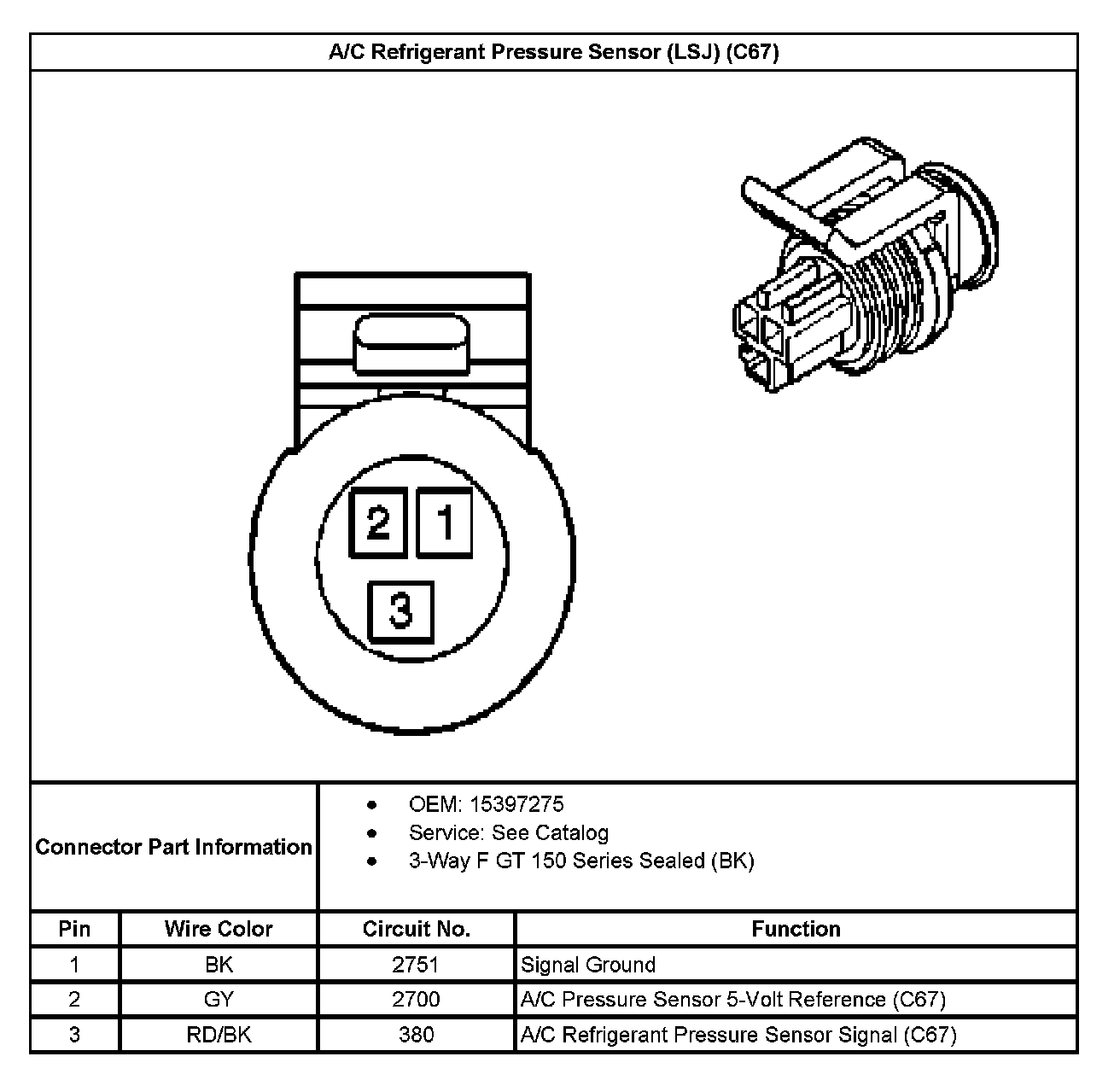 A/C Refrigerant Pressure Sensor (With RPO Code C67):