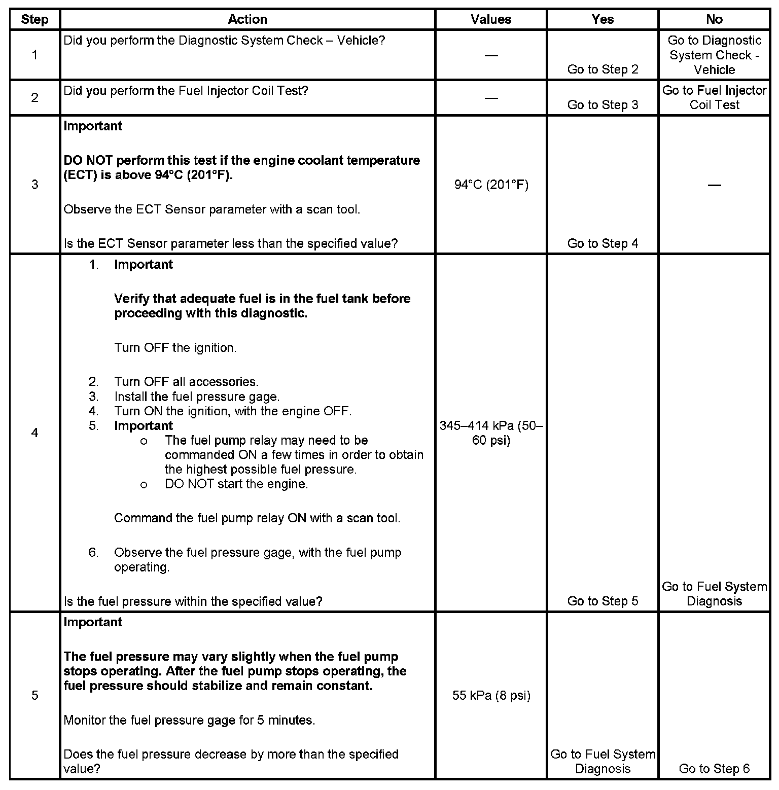 3. The engine coolant temperature (ECT) must be below the operating temperature in order to avoid irregular fuel pressure readings due to hot soak fuel boiling.