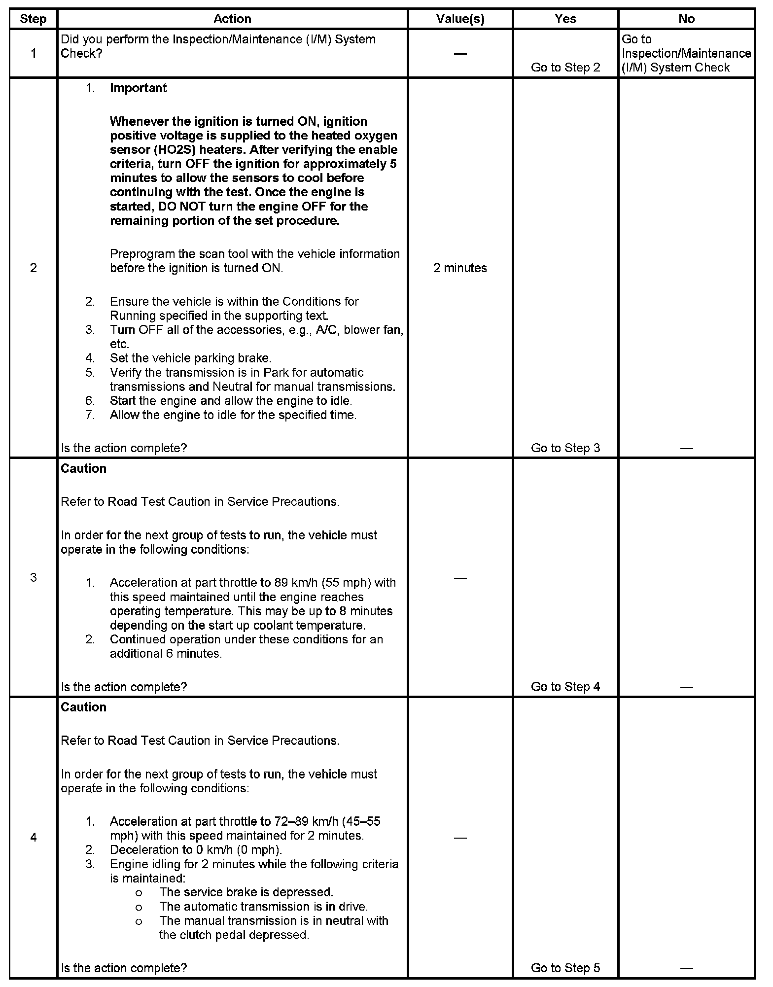 The purpose of the Inspection/Maintenance (I/M) Complete System Set Procedure is to satisfy the enable criteria necessary to execute all of the I/M readiness diagnostics, and complete the trips for those particular diagnostics. When all diagnostic tests are completed, the I/M System Status indicators are set to YES. Perform this test when more than one of the I/M System Status indicators are set to NO.