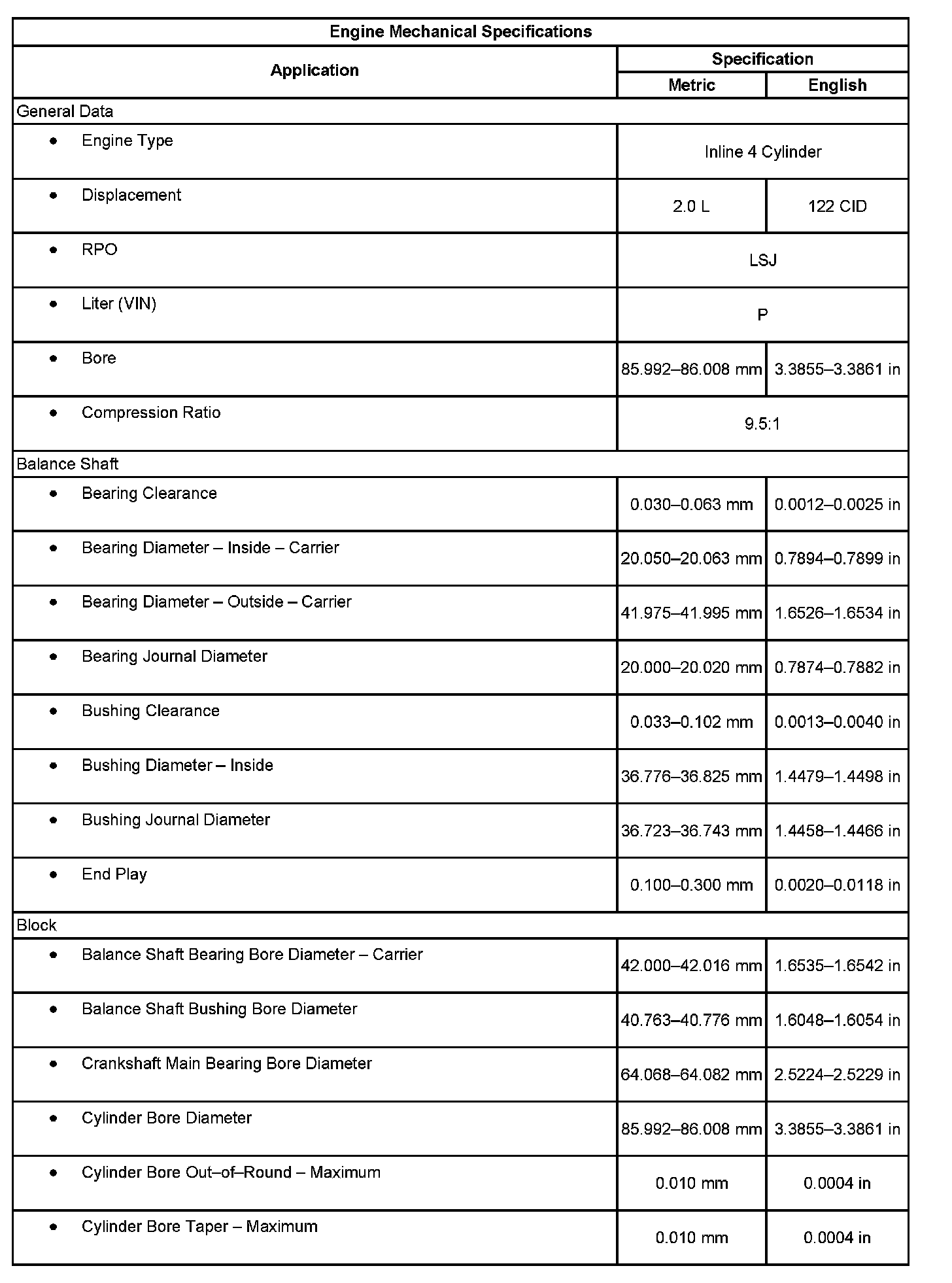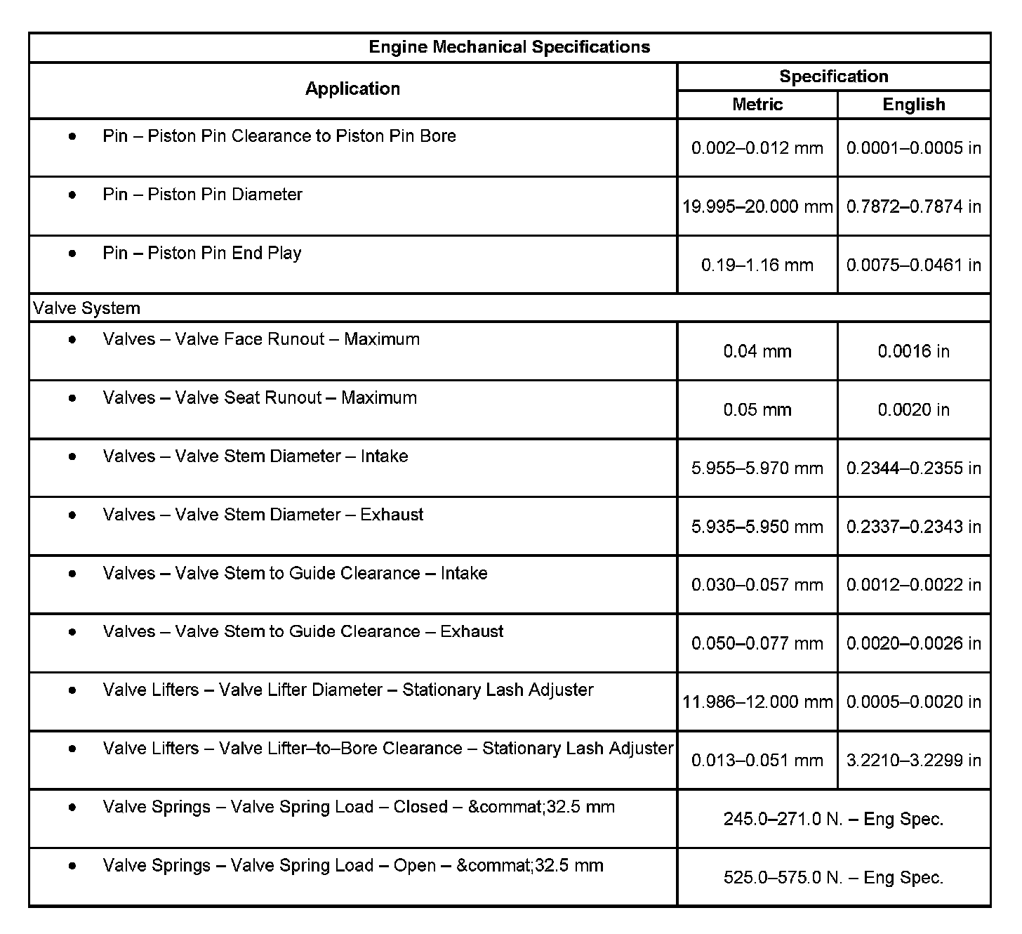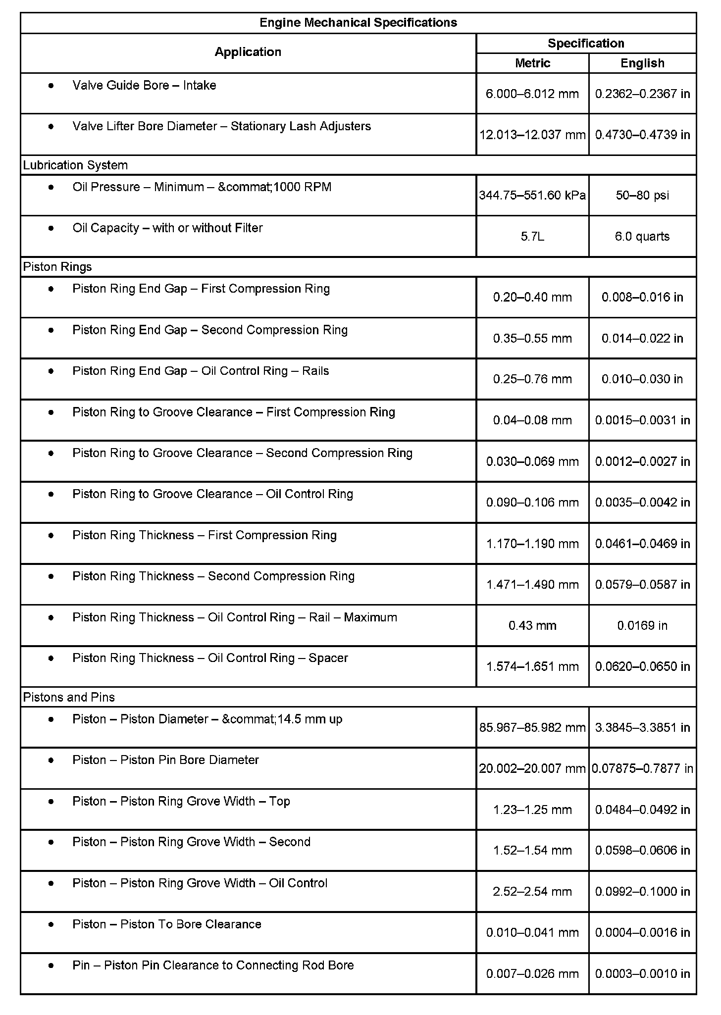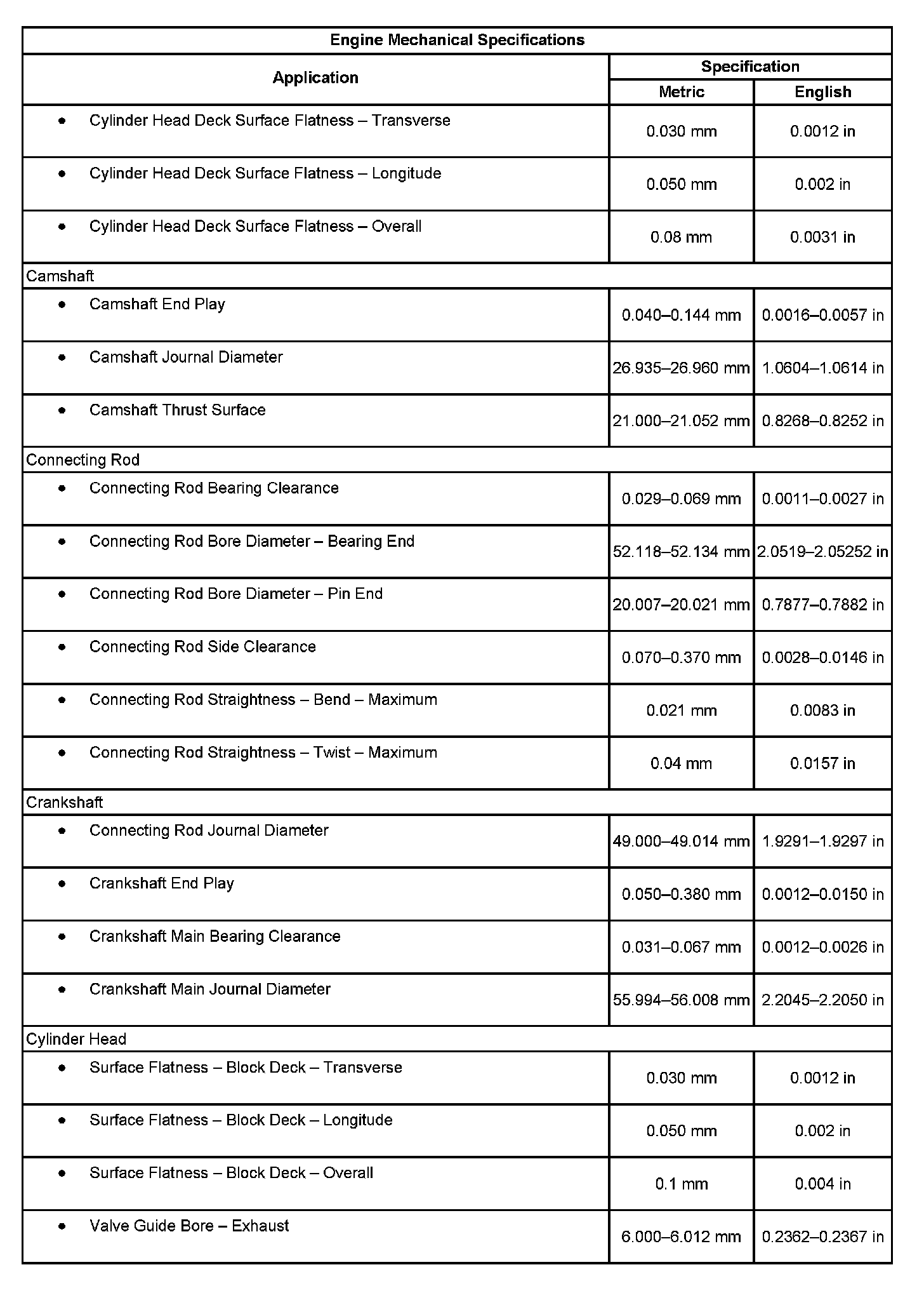 Engine Mechanical Specifications: