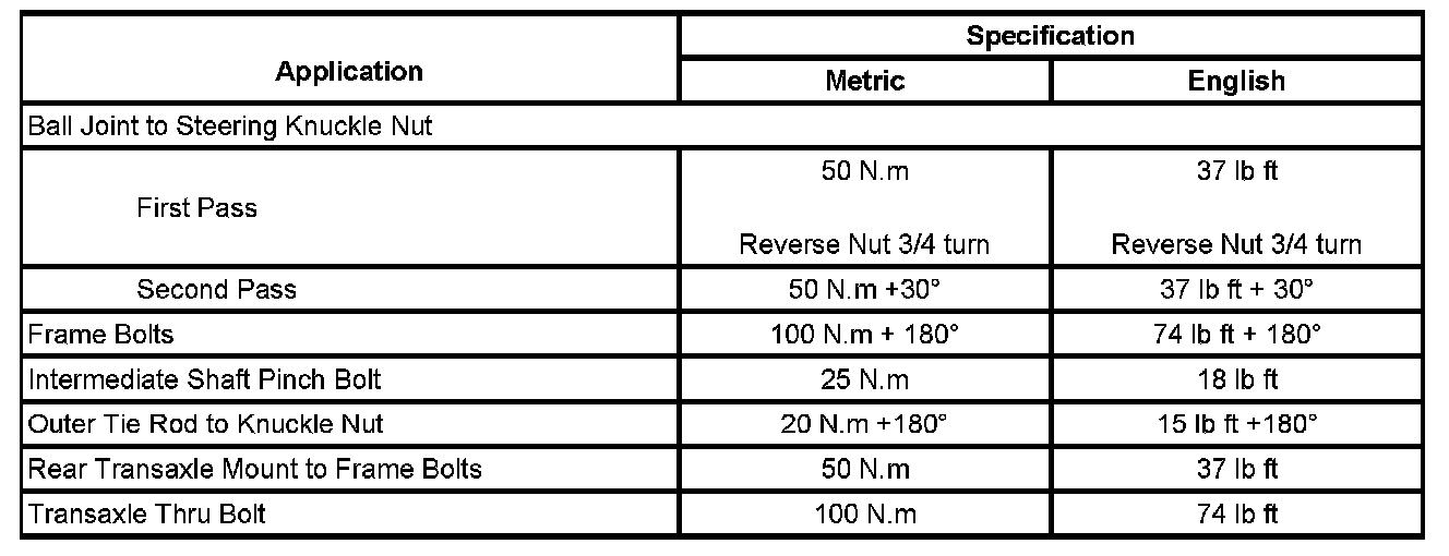 Fastener Tightening Specifications