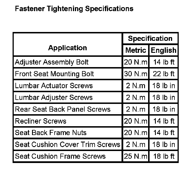Seats: Specifications