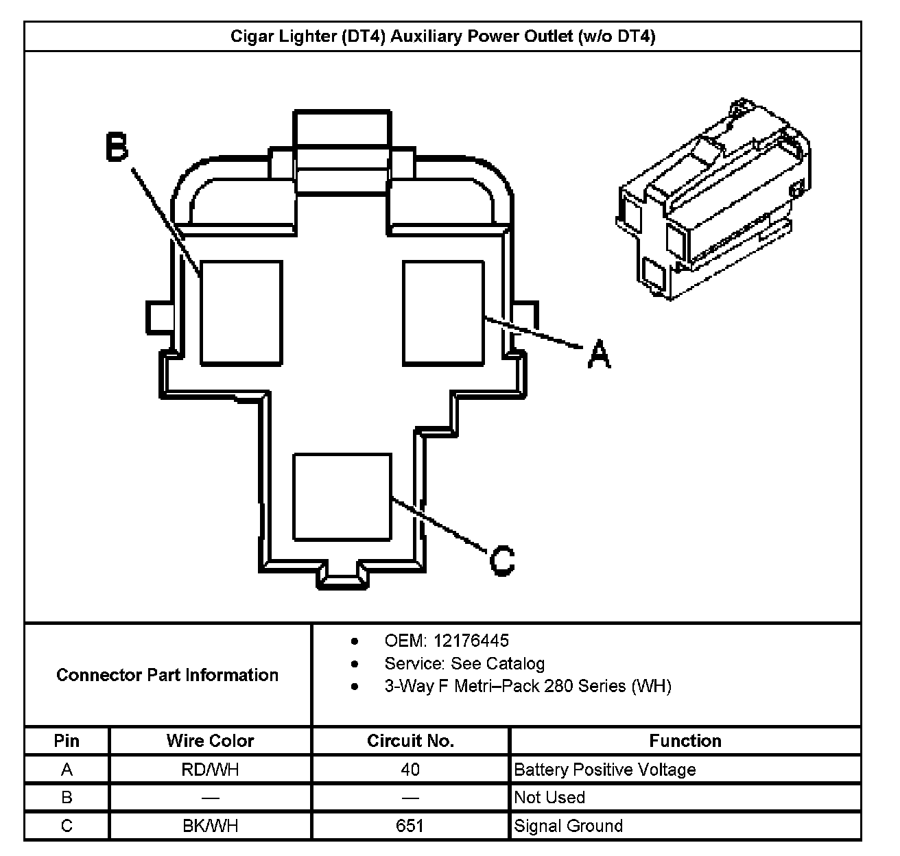 Cigar Lighter (With RPO CodeDT4) Auxiliary Power Outlet (Without RPO Code DT4):