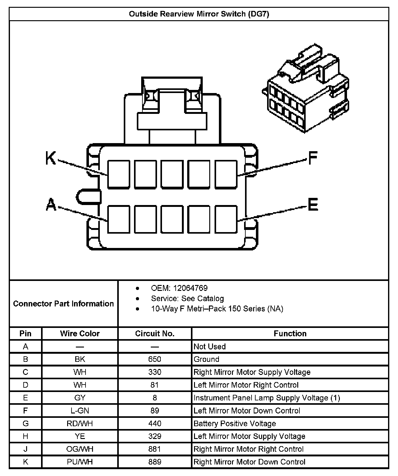 Outside Rearview Mirror Switch (With RPO Code DG7):