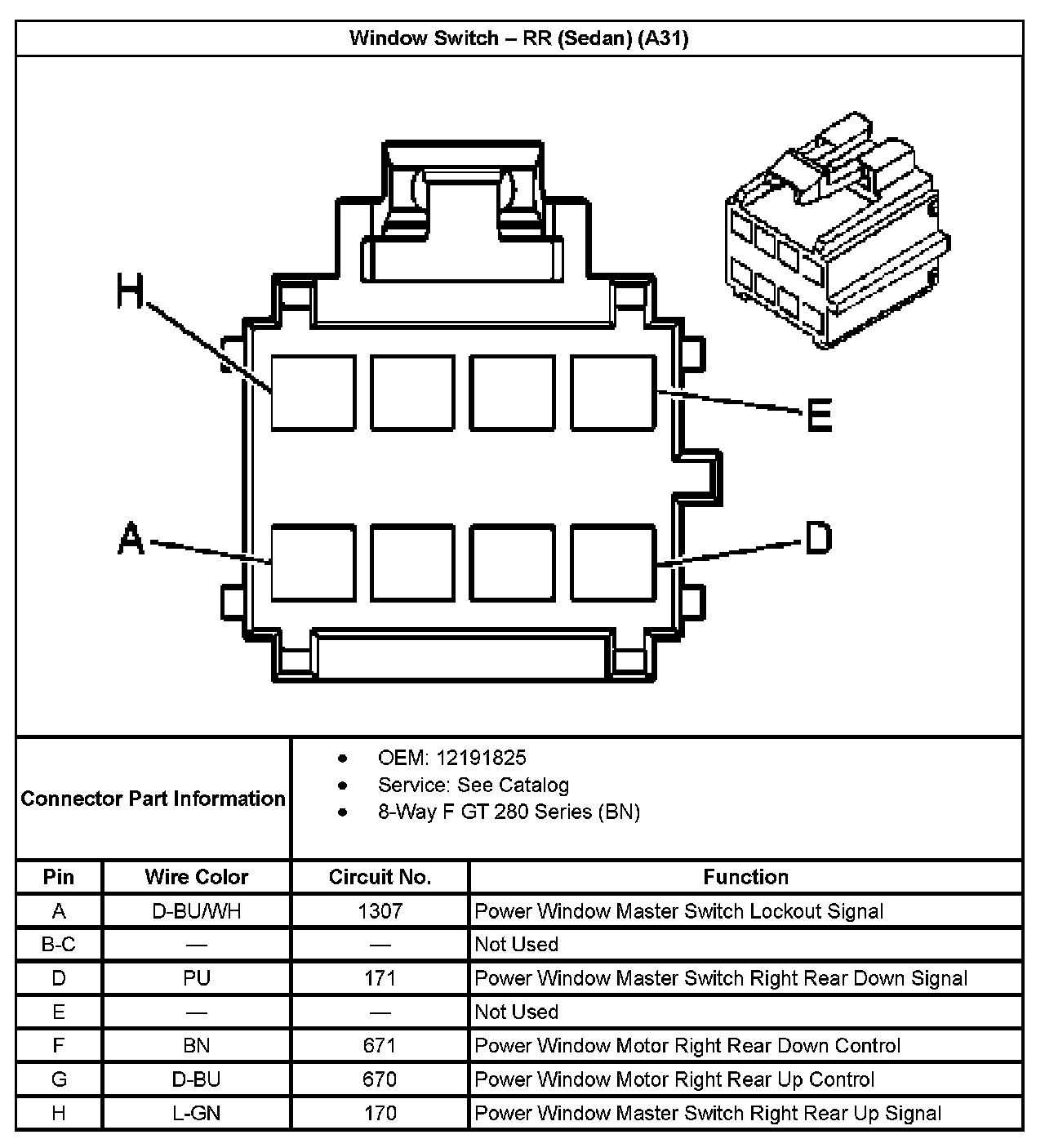 Window Switch - RR (Sedan) (With RPO Code A31):