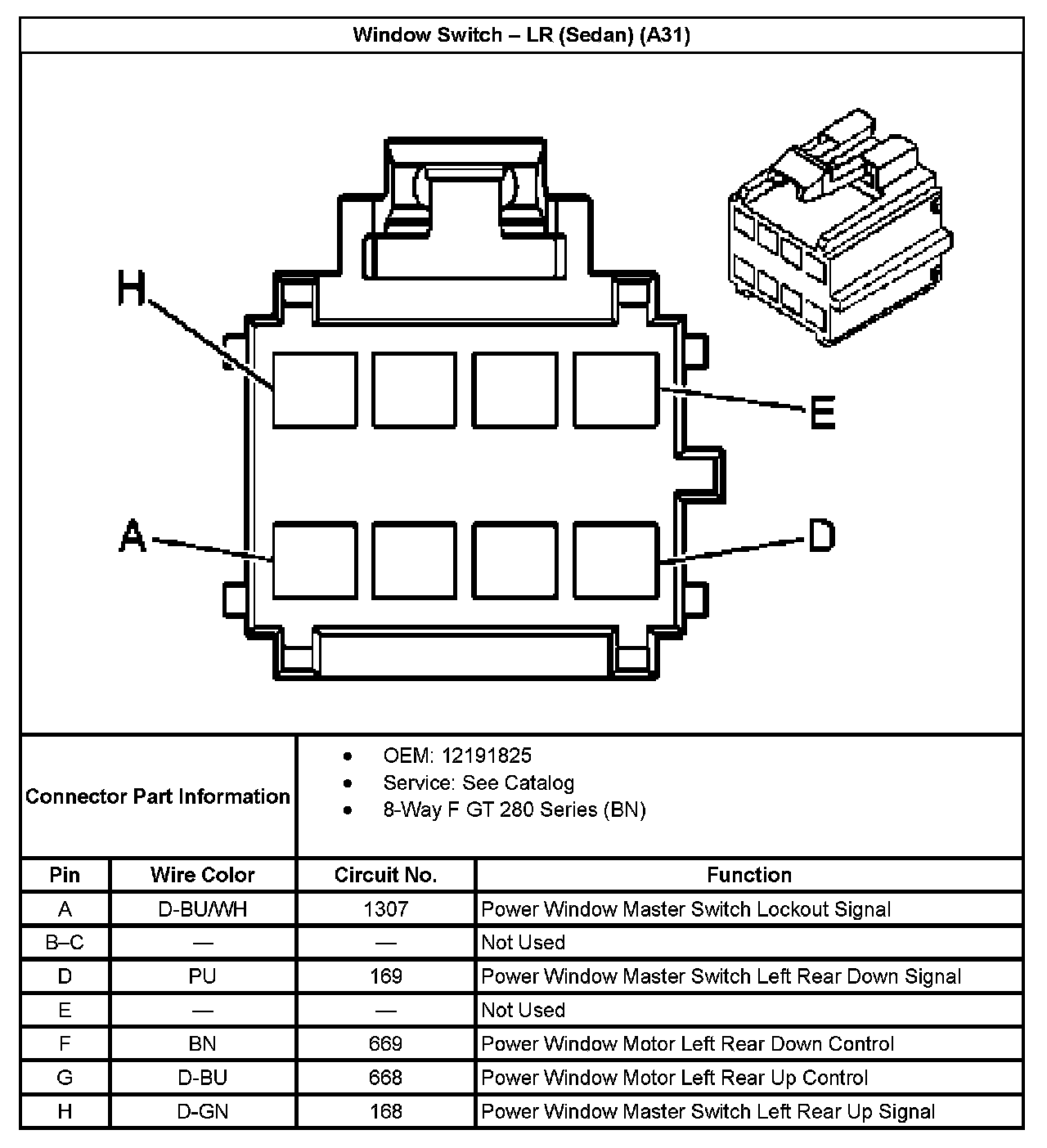 Window Switch - LR (Sedan) (With RPO Code A31):