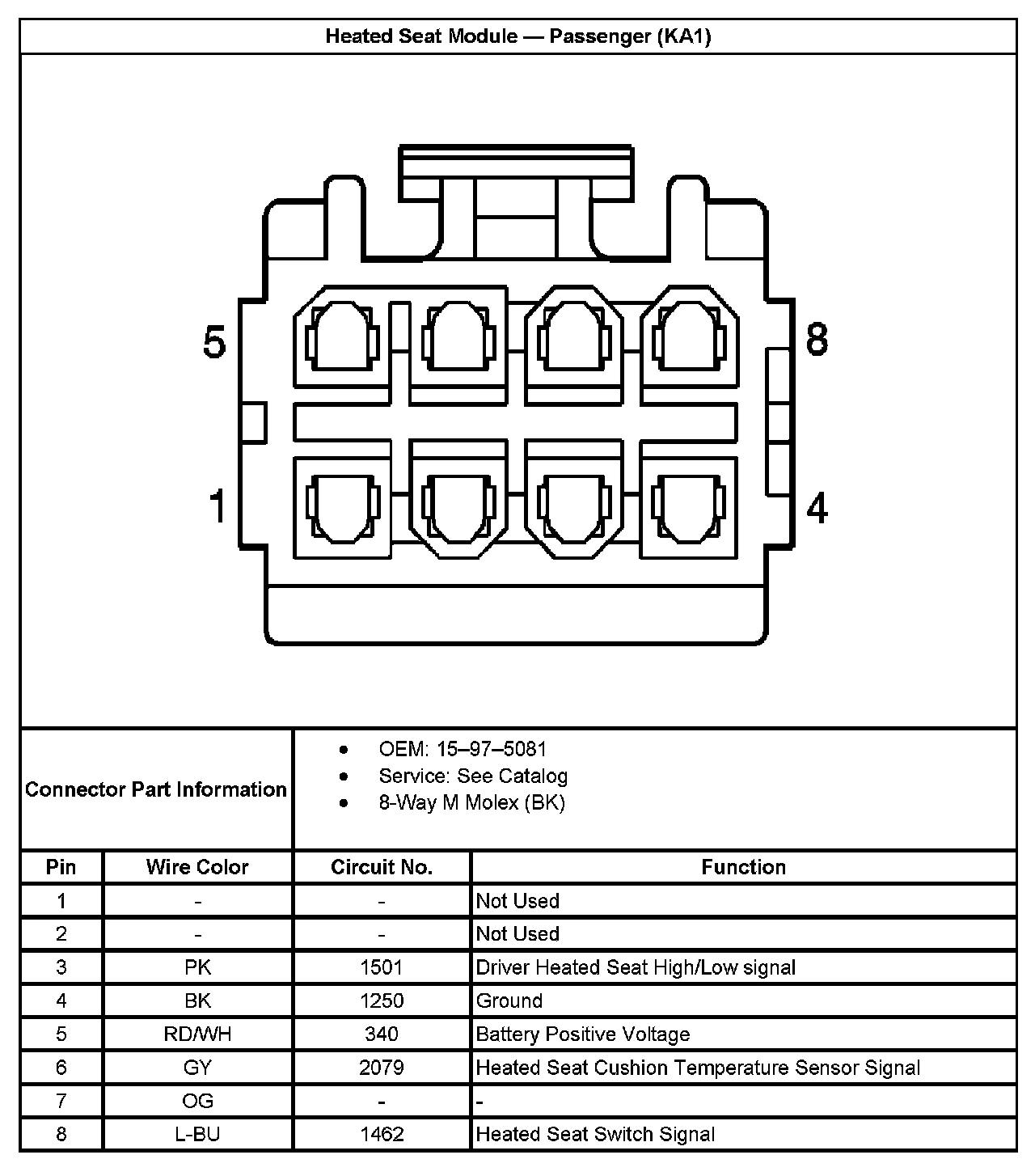 Heated Seat Module - Passenger (With RPO Code KA1):