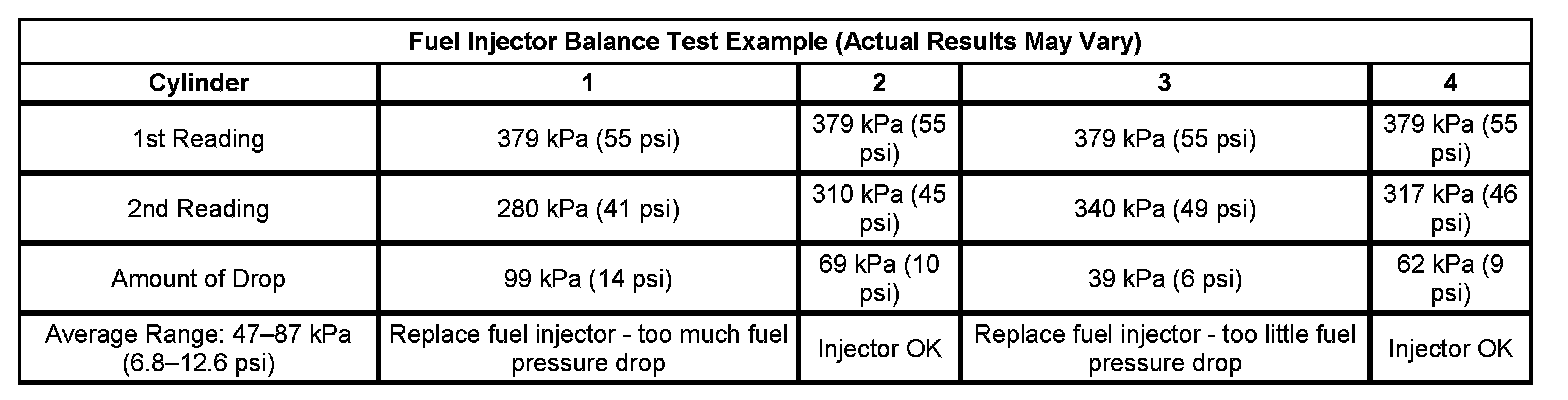 Fuel Injector Balance Test Example (Actual Results May Vary):