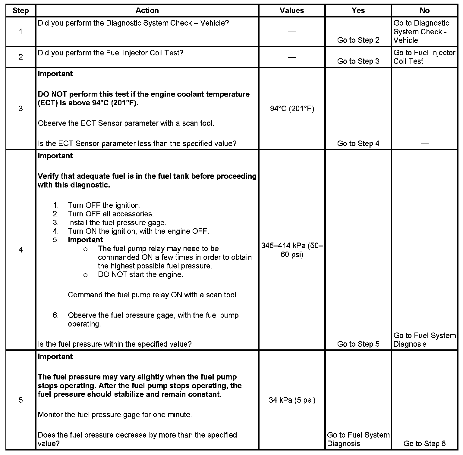 3. The engine coolant temperature (ECT) must be below the operating temperature in order to avoid irregular fuel pressure readings due to hot soak fuel boiling.