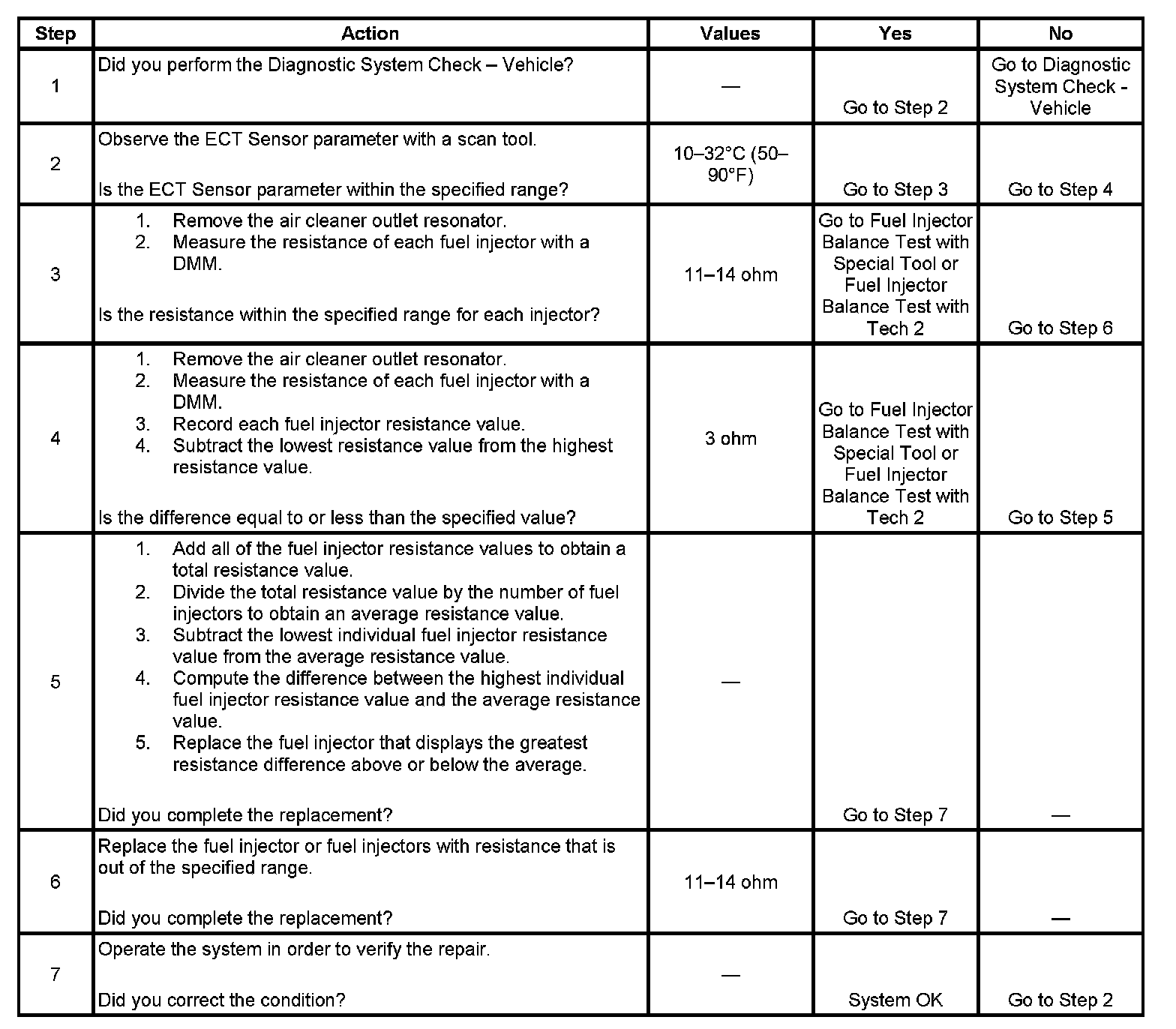 - Perform the fuel injector coil test within the conditions of the customer's concern. A fuel injector condition may only be apparent at a certain temperature, or under certain conditions.