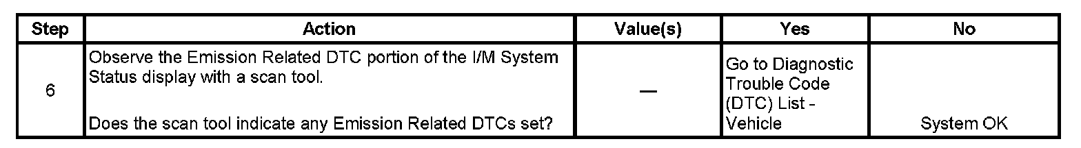 6. The I/M System Status only reports on whether or not a diagnostic has run, not what the outcome of the test was. If any emission related DTC sets after the tests are complete, the DTC will require diagnosis.