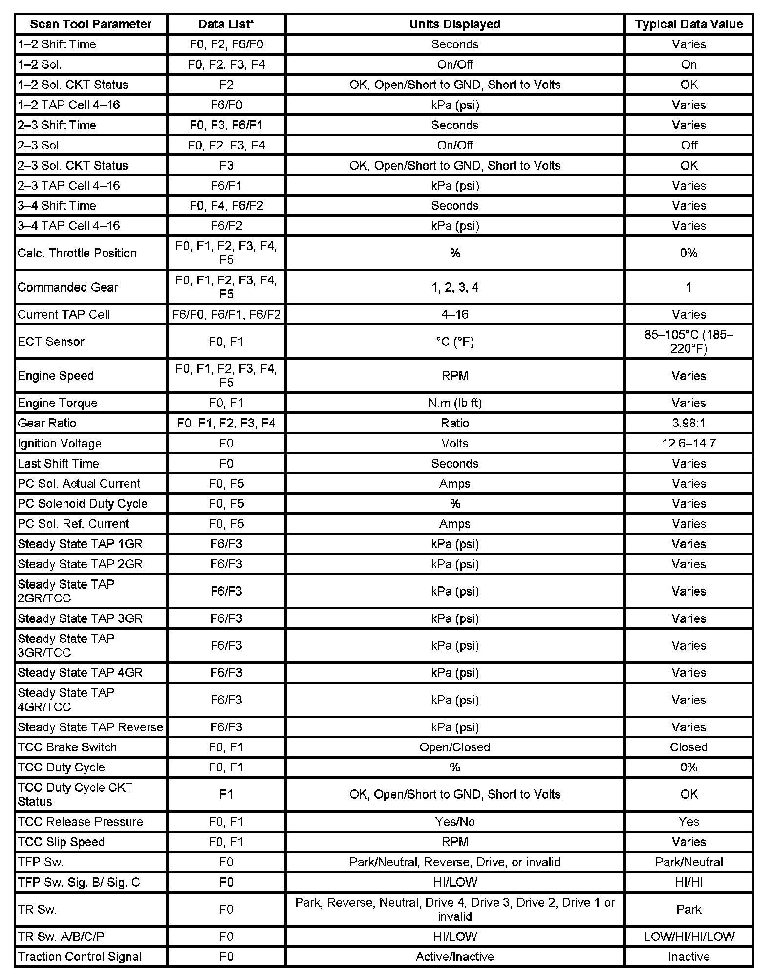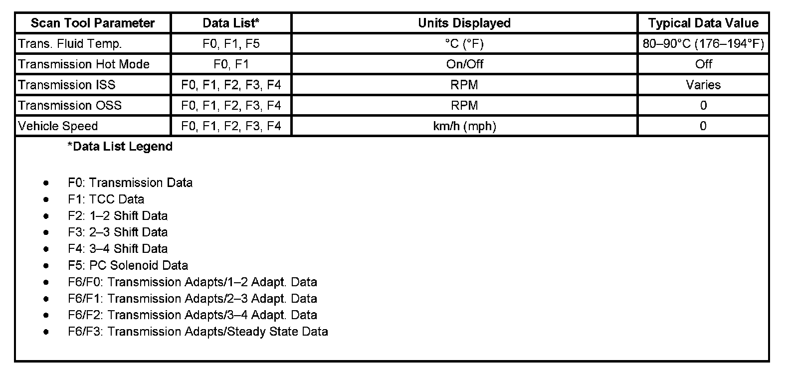 Only the parameters listed are used for diagnosing. If a scan tool displays other parameters, the values are not recommended by General Motors for use in diagnosis.