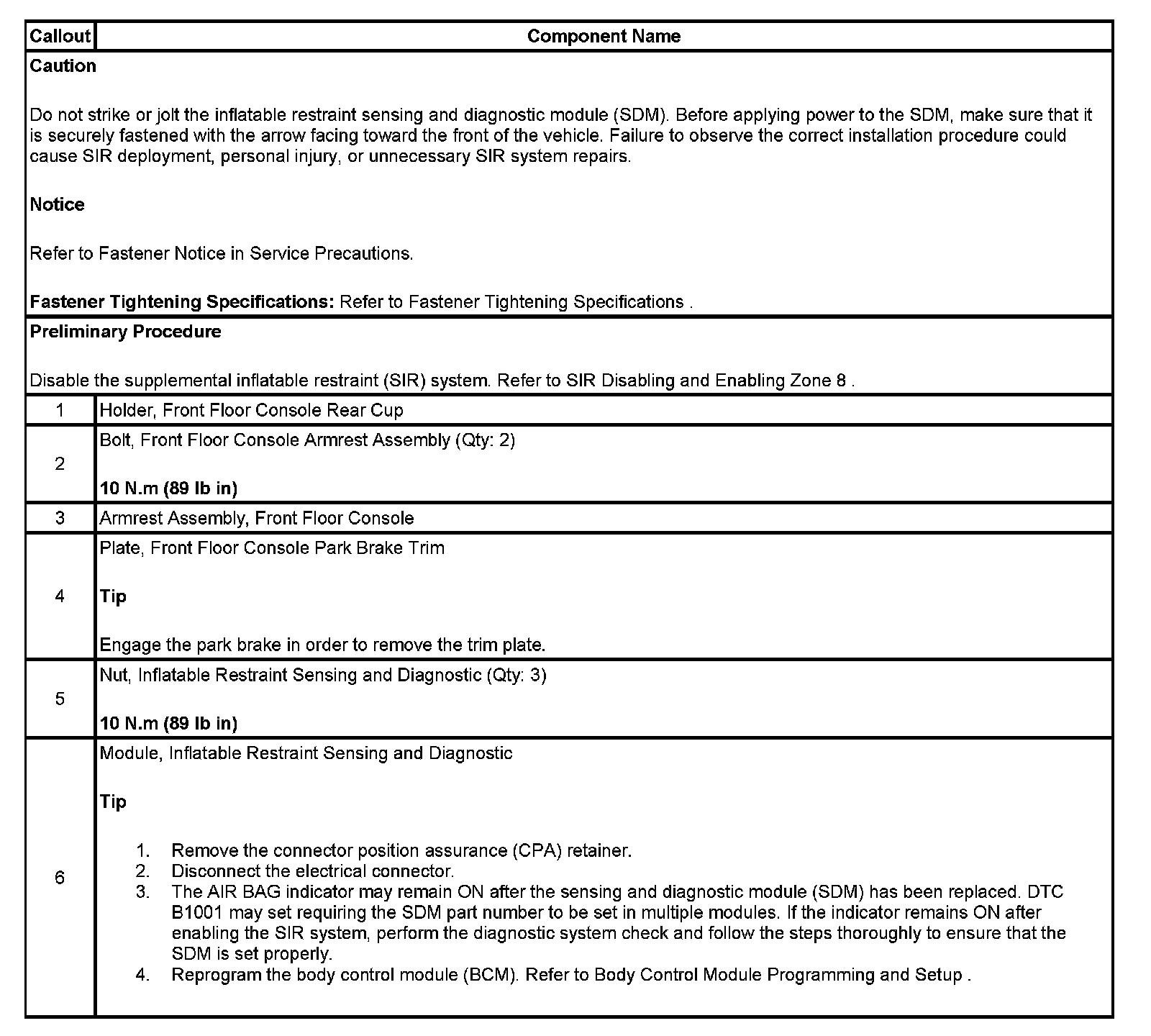 Air Bag Control Module: Service and Repair