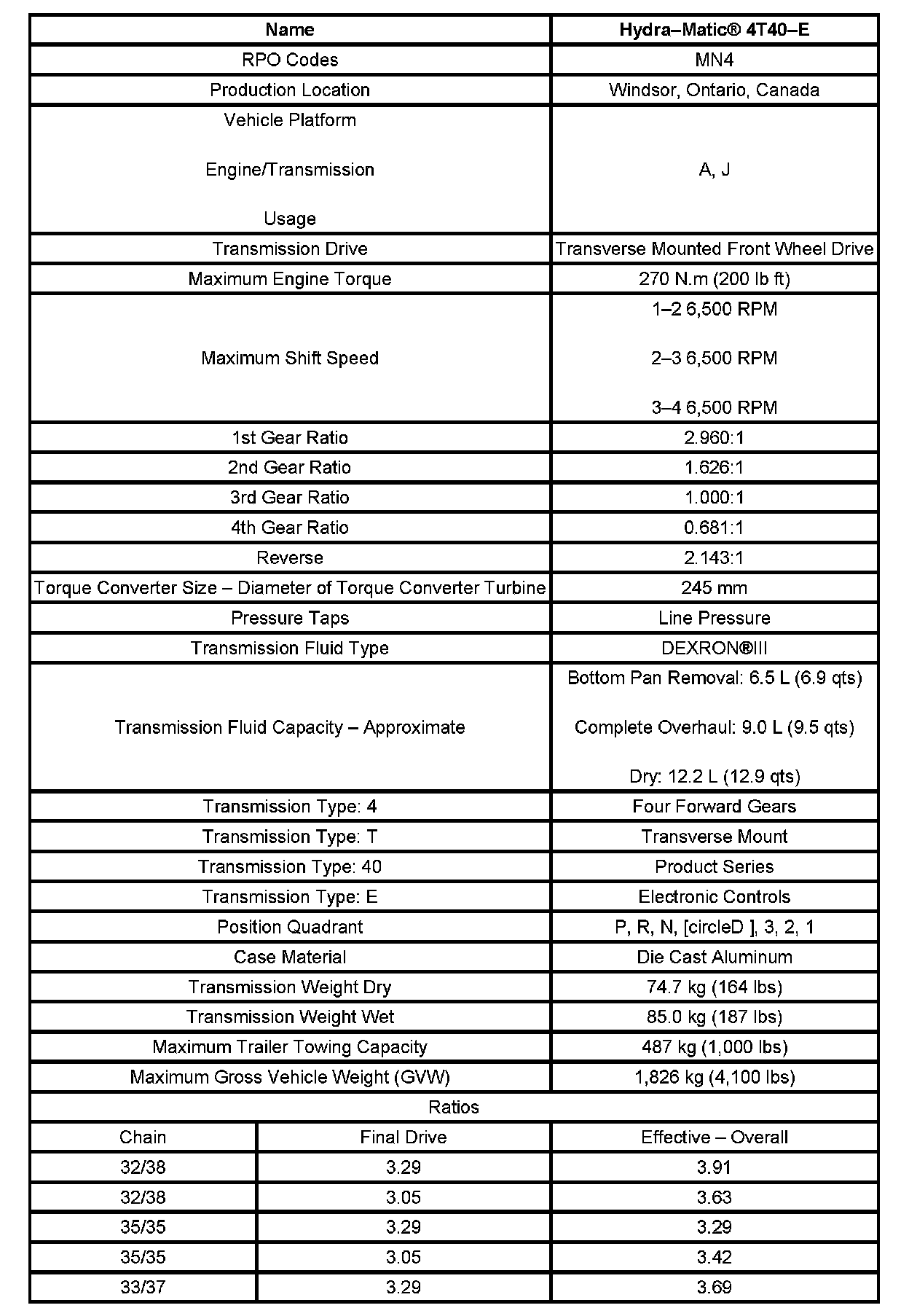 Transmission General Specifications
