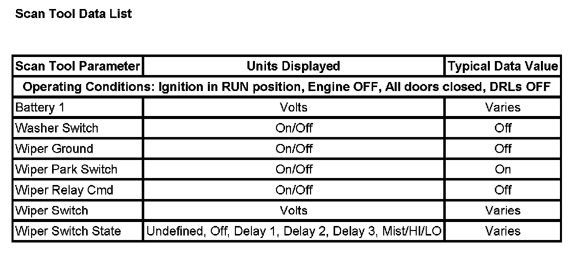 Scan Tool Data List:
