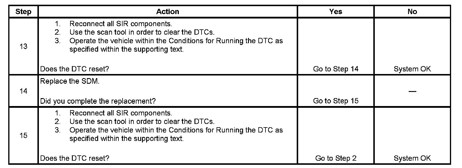 - Damage or corrosion on the SDM harness connector
