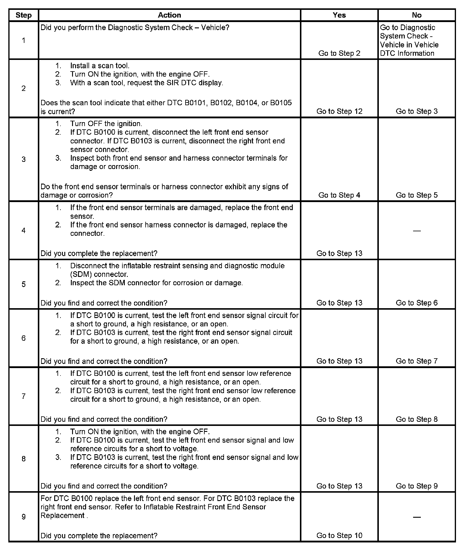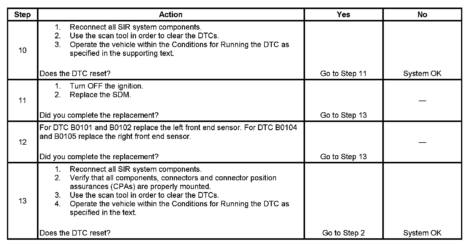 - DTC B0101 or B0104 will set when the SDM has received 4 consecutive NOK (Not OK) messages from the front end sensor.