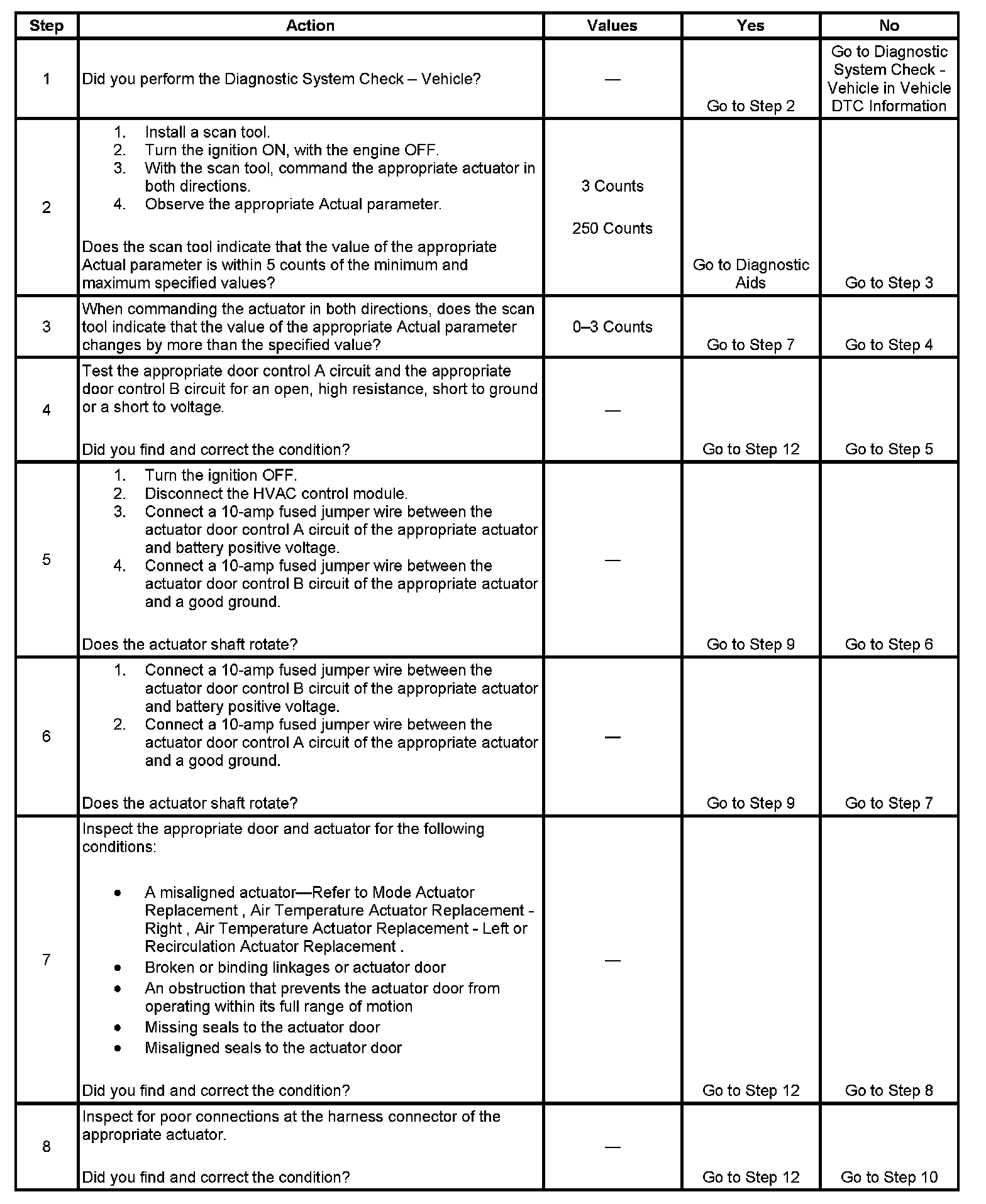 - The HVAC control module determines that the actual door position does not equal the commanded door position. The HVAC control module commands the door to move but does not see the expected number of pulses between positions.