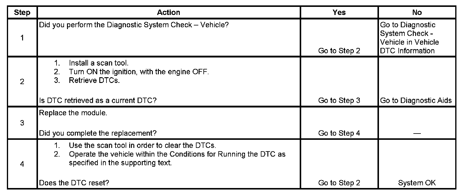 - If this DTC is retrieved as both a current and history DTC, replace the module.