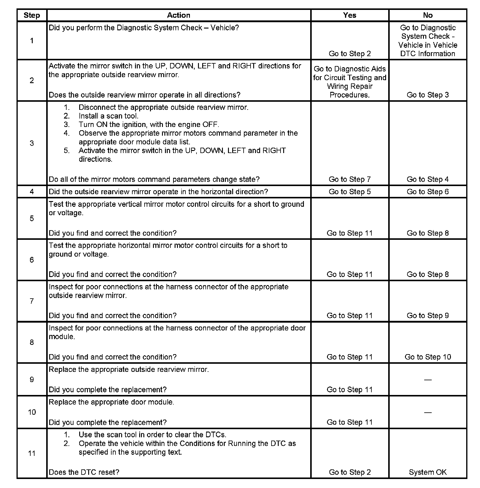 - The DDM or PDM detects a short to ground or voltage in the mirror motor control circuit.