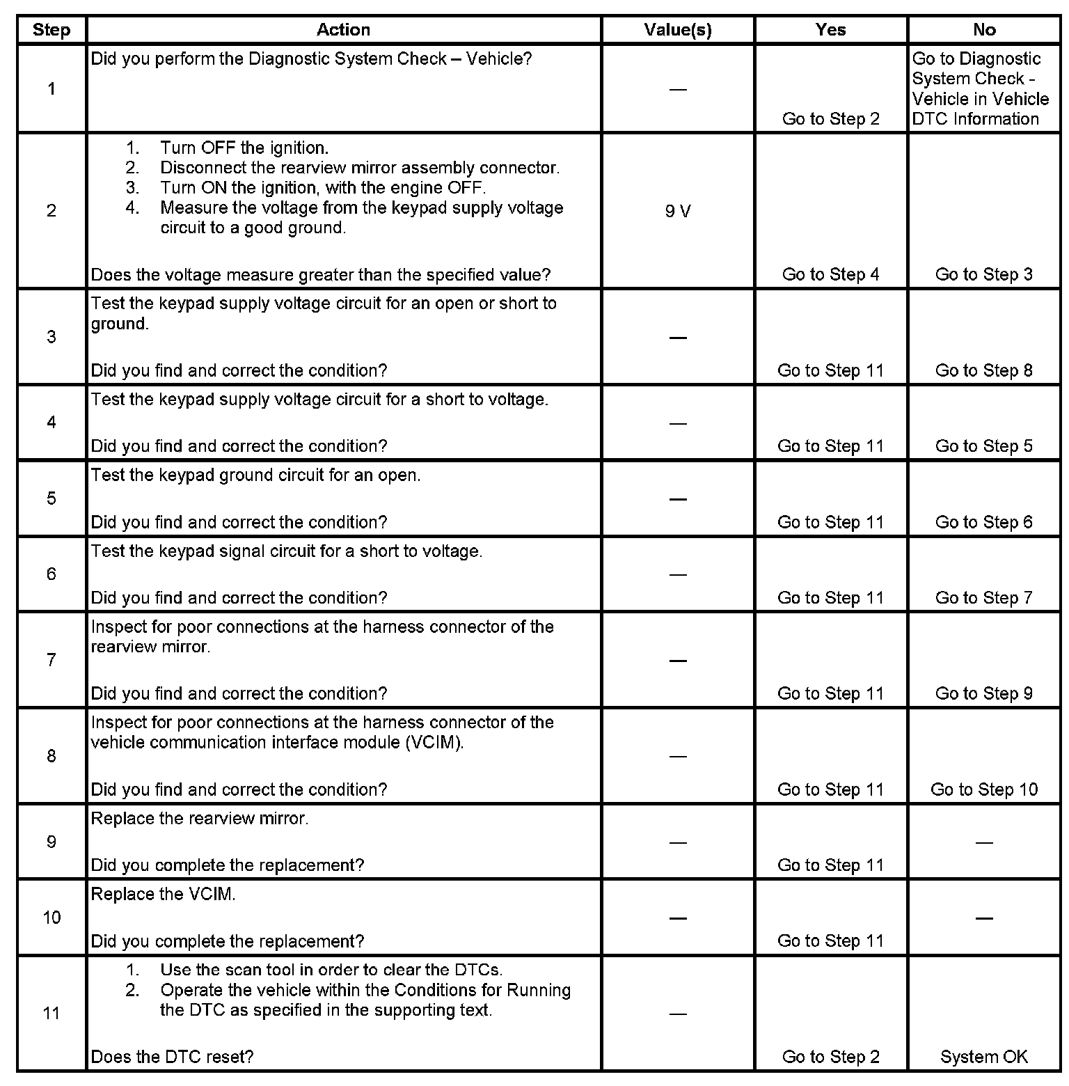 - The keypad signal circuit voltage to the VCIM less than 2.8 volts or more than 3.2 volts.
