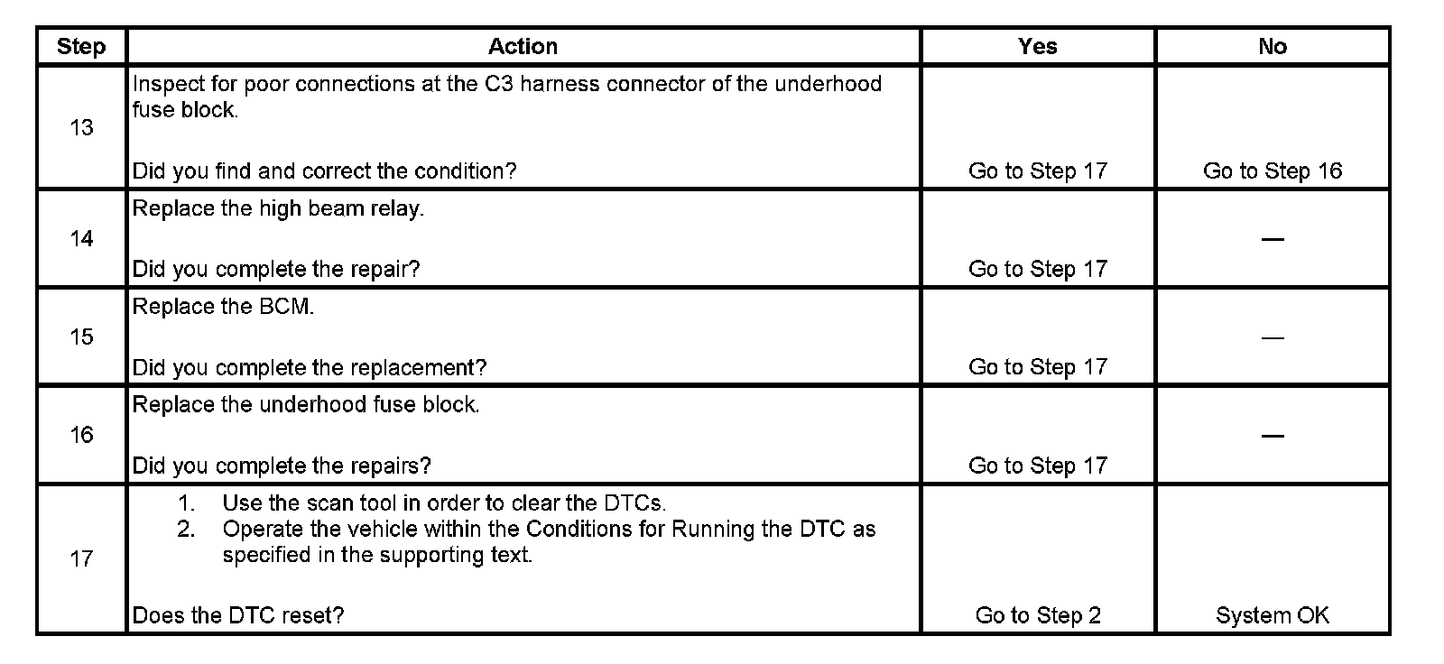 - When DTC B2580 06 is present, the high beam headlamps will remain ON.