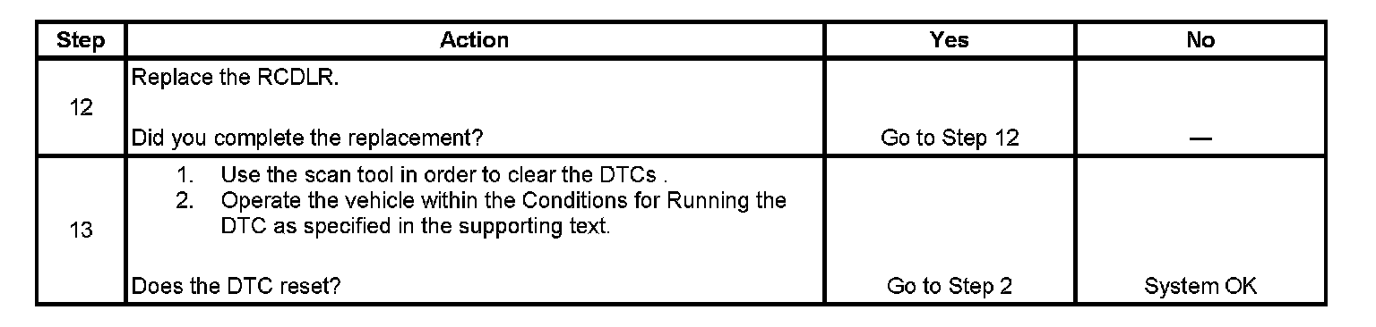 ^ All RCDLR history codes will clear after 100 ignition cycles with no current codes active during the 100 ignition cycles.