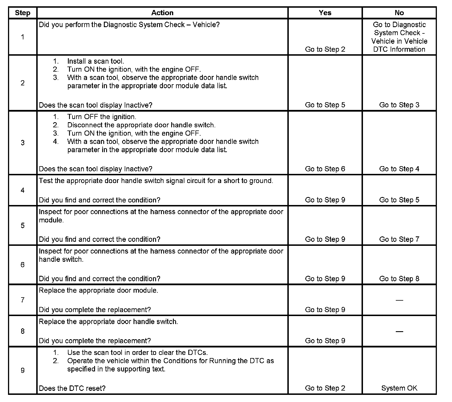 - DTC B1474 Right Front/Passenger Exterior Door Handle Switch Circuit