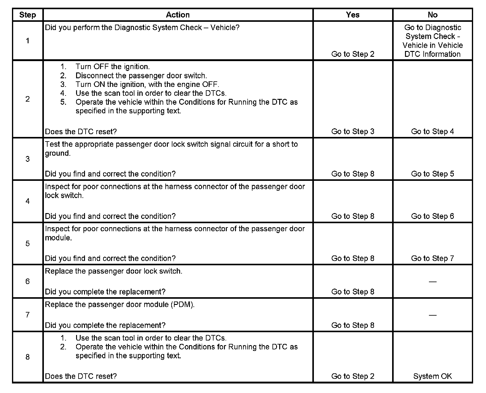 - The PDM detects a short to ground in the passenger door lock switch lock or unlock signal circuits.