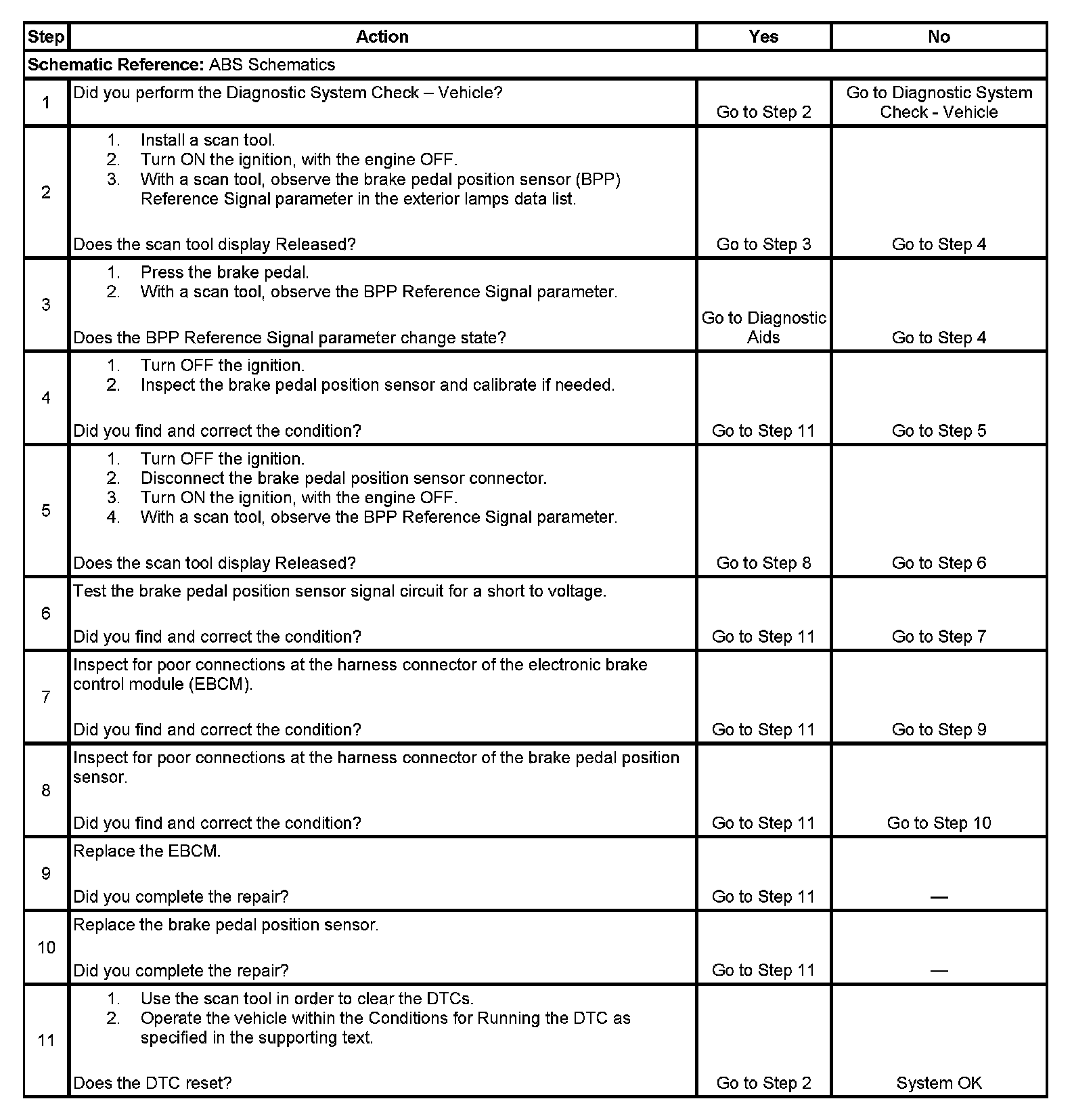 2. Test for the current state of the brake pedal position sensor.